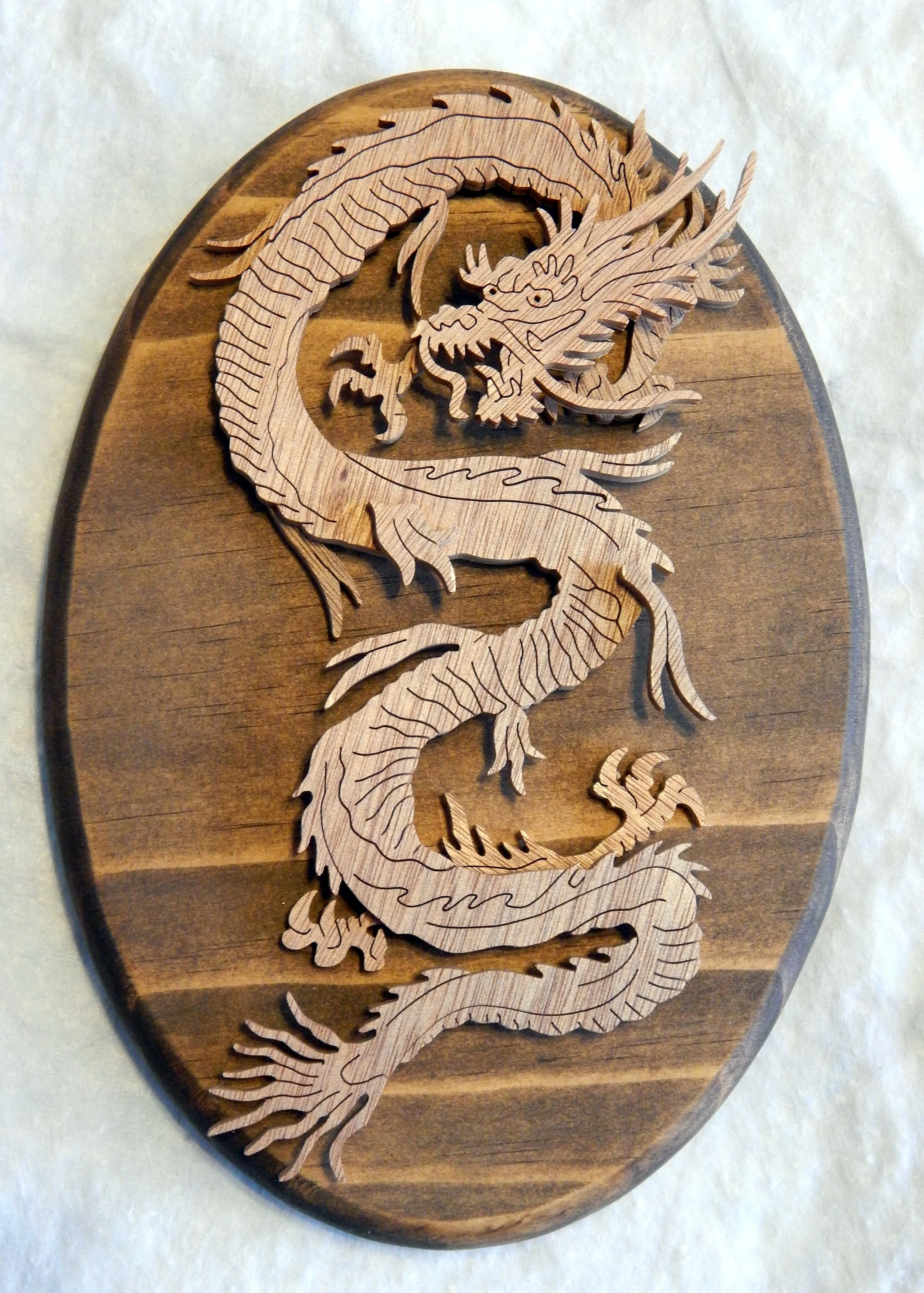 of “Brads No Laser Woodwork” specializes in scroll saw fretwork: Military Plaques, NFL Helmets, Christmas and Public Service Plaques, State Plaques and Wildlife Cutouts.